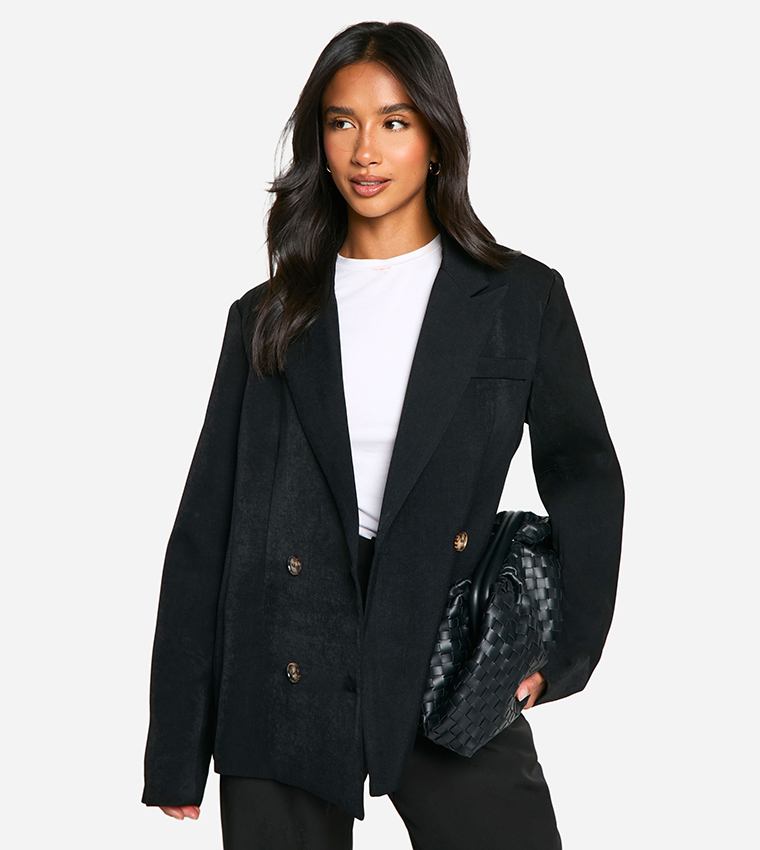 & Free ShippingDouble-breasted design with stylish metallic buttons Oversized fit for a contemporary silhouette Notched lapels for a classic tailored look Long sleeves with subtle shoulder padding Versatile twill fabric suitable for various occasions Make a bold statement with this petite double-breasted blazer from Boohoo. Perfect for the fashion-forward woman who demands versatility in her wardrobe, this jacket effortlessly transitions from day to night. The oversized fit offers a modern twist on classic tailoring, while the metallic buttons add a touch of glamour.